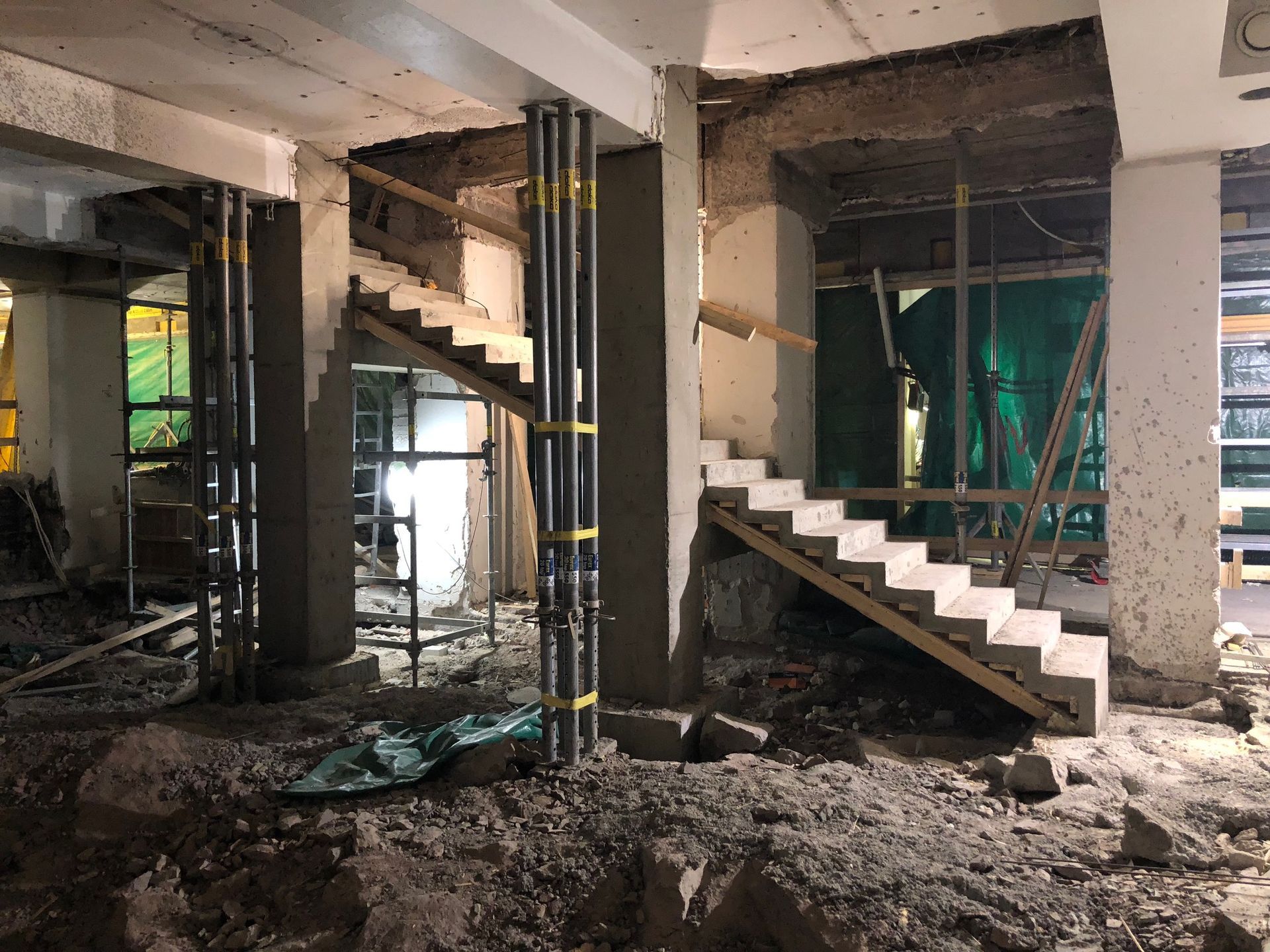 väliseinien muuraustyöt ja levyväliseinät, iv -konehuoneen purku ja rakennustyöt, seinä- ja smyygirappaukset, listoitustyöt