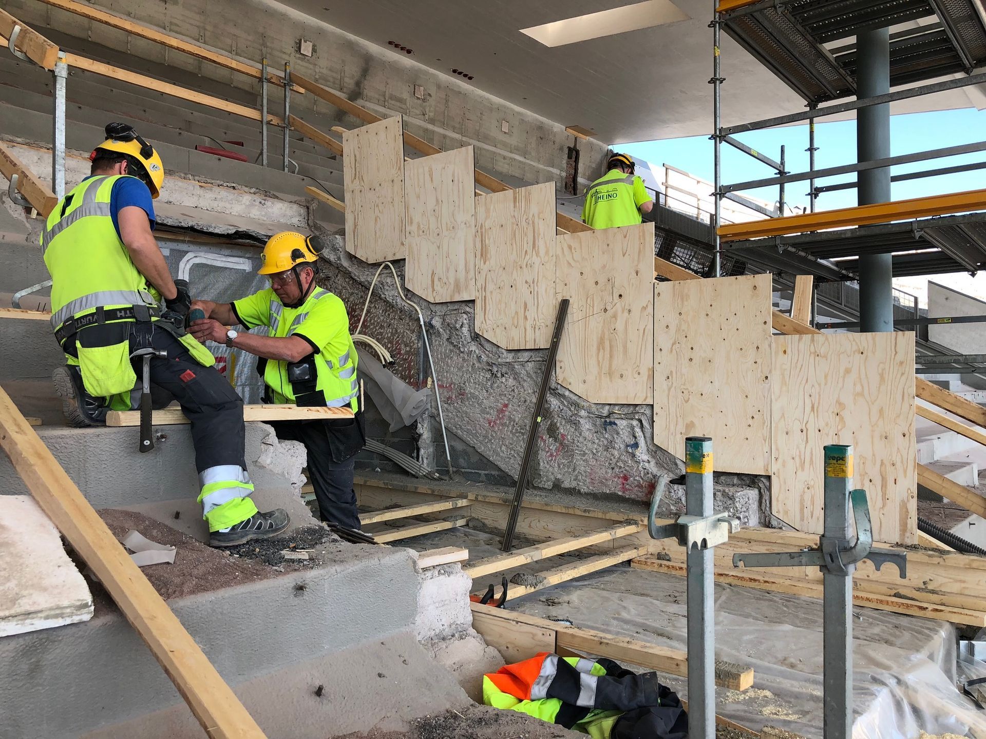 YIT Rakennus Oy, Otaniemi, Espoo. Porras / hissikuilun raudoitus ja muottityöt, pilareiden ja seinien manttelointi