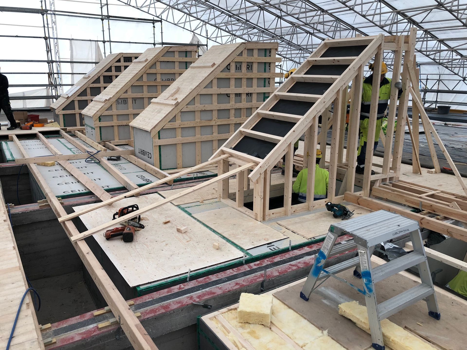 Ncc Rakennus oy Fazerin työmaa Vantaa lastauslaituri ja rungot / eristykset ja sembrit levytykset